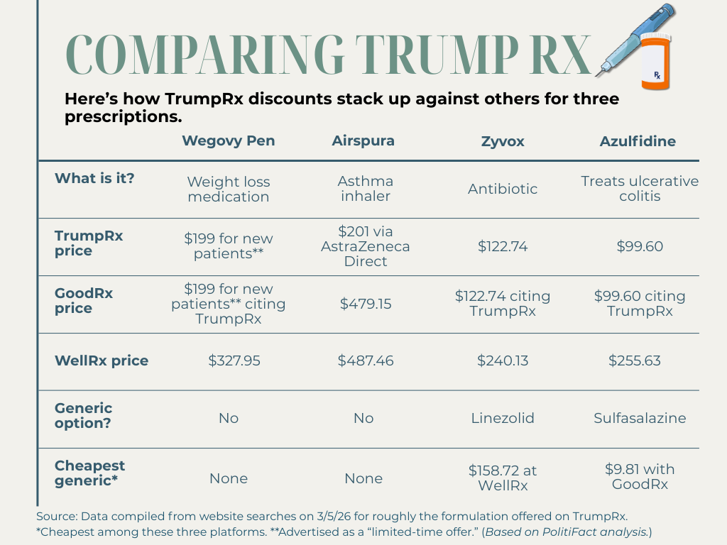 Now President Donald Trump’s new prescription drug website TrumpRx.gov introduces another option. Like many similar sites, TrumpRx is a searchable database and its pricing discounts are available only to people who are not using insurance to pay. But it largely lacks generic medications, offers limited drug information and its discounts often come with other stipulations. Here’s how and when to use TrumpRx in your quest to find the best prices.