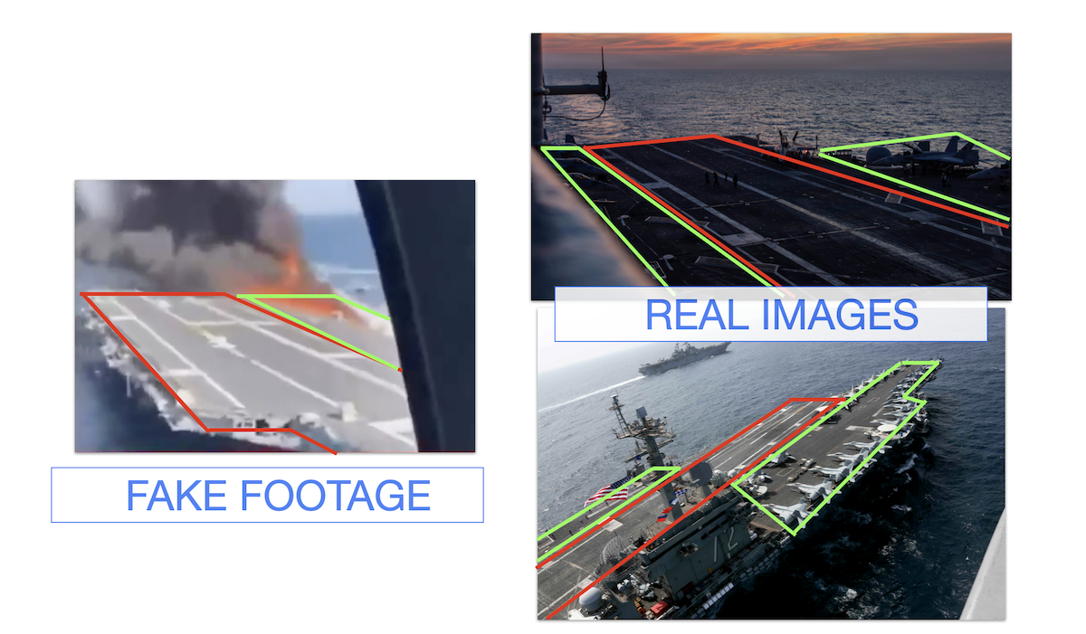 But these videos are fake. Iranians claimed they targeted the carrier with ballistic missiles, but there are no credible reports the ship was struck.